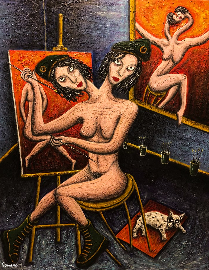 They explain that such ideas resulted from a long period of depression and, therefore, of isolation from society. As they explain, “being introverts by nature, we found in art a way to communicate our messages to the world”. Their creations are “mutual and simultaneous and their style is intense, ritualistic and cult-like, dealing with beliefs and religion, relationships between women, magic, as well as with the power of emotions”. Romano often use themselves as a reference to create imaginative female characters, something particularly visible through their black and white series of drawings.