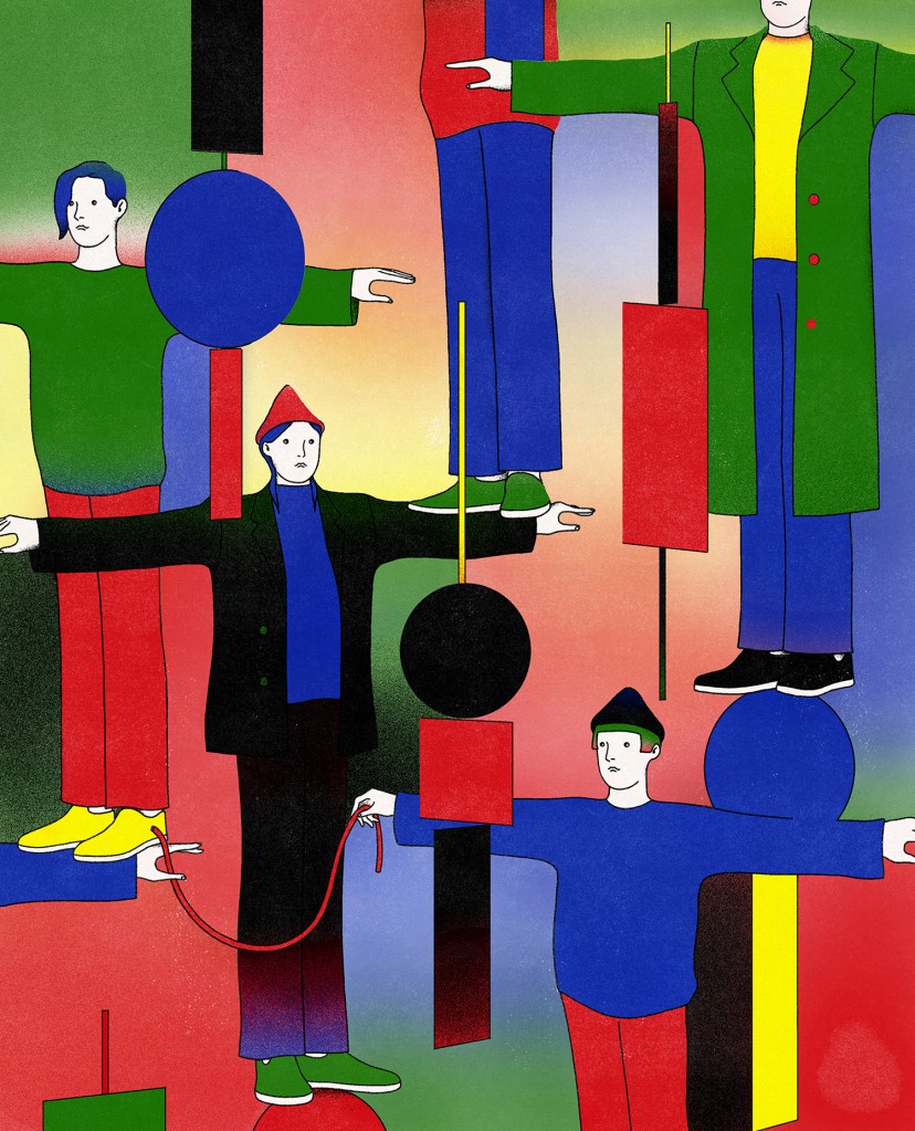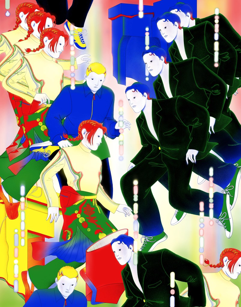 As an artist, I had a turning point in my drawing style. At that moment, I drew paintings as I pleased, not considering the outcome of the work. From that moment, I started to draw characters who were impassive and also to use limited colors and geometric shapes. Before then, I had drawn commercial paintings, so I was afraid that such an attempt would negatively impact my career. However, it rather became an opportunity to unfold my cognitive potential. I am thankful that I was able to overcome that concern. I think being honest is a good thing.
